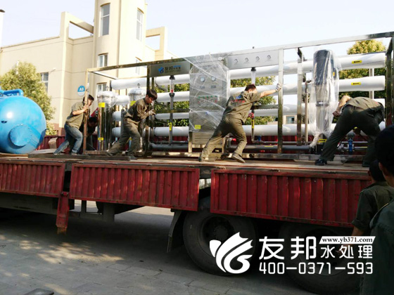 這套型號為YB-CJS-008的水處理設備正在裝車發(fā)貨,是發(fā)往新鄉(xiāng)某新材料有限公司。河南友邦在此次合作中為新鄉(xiāng)某新材料有限公司提供提供的8T/H純水系統(tǒng),完美的解決了對方在生